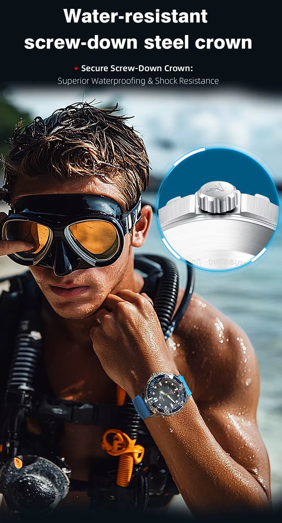 Featuring a unidirectional rotating ceramic bezel, luminous hands, and backlight display, it delivers precision and visibility above or below water. With an impressive 300M water resistance, it’s ideal for swimming, diving, and extreme outdoor exploration.